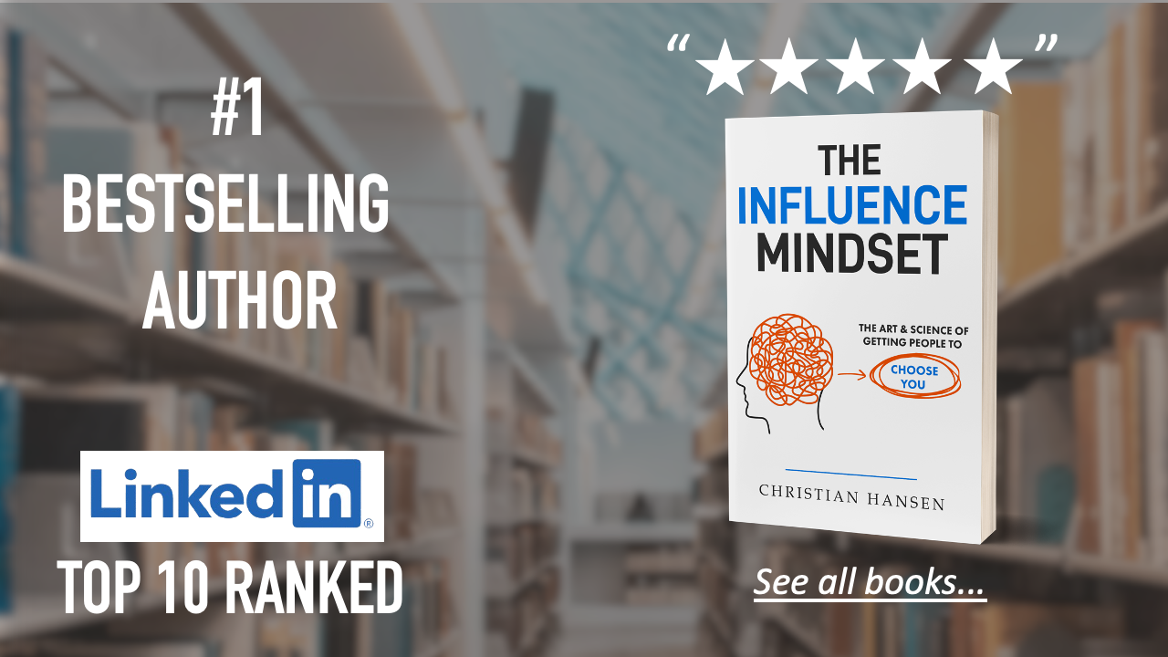 In his book THE INFLUENCE MINDSET for Sales Acceleration Personal Influence Expert Christian Hansen shares research backed strategies that are designed to influence Decision Makers to choose you... every single time. Order your copy to be seen as the obvious choice!