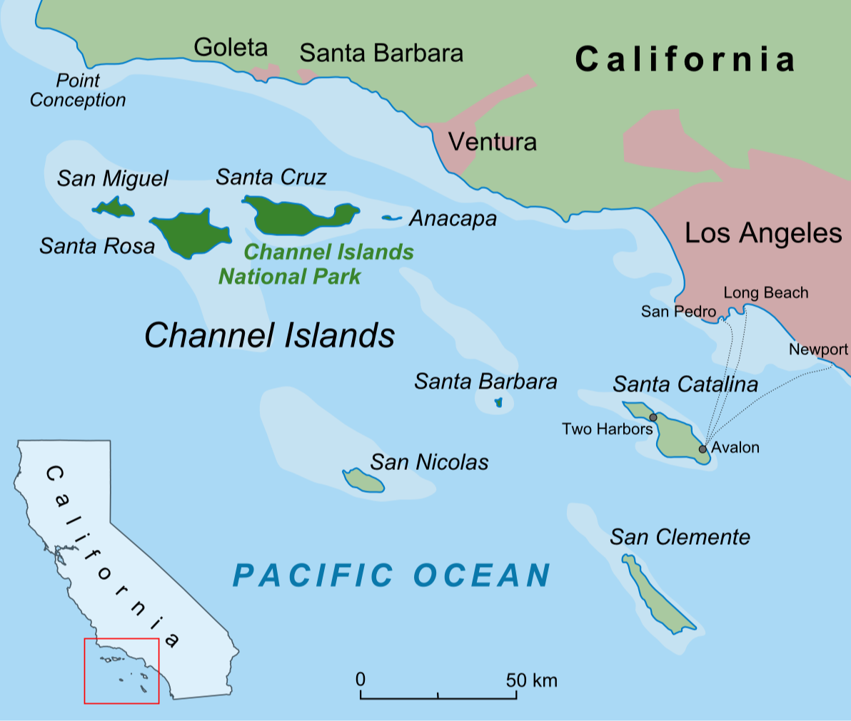 You probably have heard of the most popular… Catalina… which was once the glamorous getaway for the stars of Hollywood’s golden age. But today it welcomes crowds from scuba divers, passing cruise ships, and the occasional buffalo from the island’s wild buffalo herd.